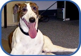 I’d like you to meet Derek, our newest addition to RTA. Derek’s a pure bred Greyhound and has accepted the position as the RTA mascot. And Yes, Derek is one of those racing Greyhounds. He’s retired now but luckily found a good home with Emily Brockman on our Engineering staff.